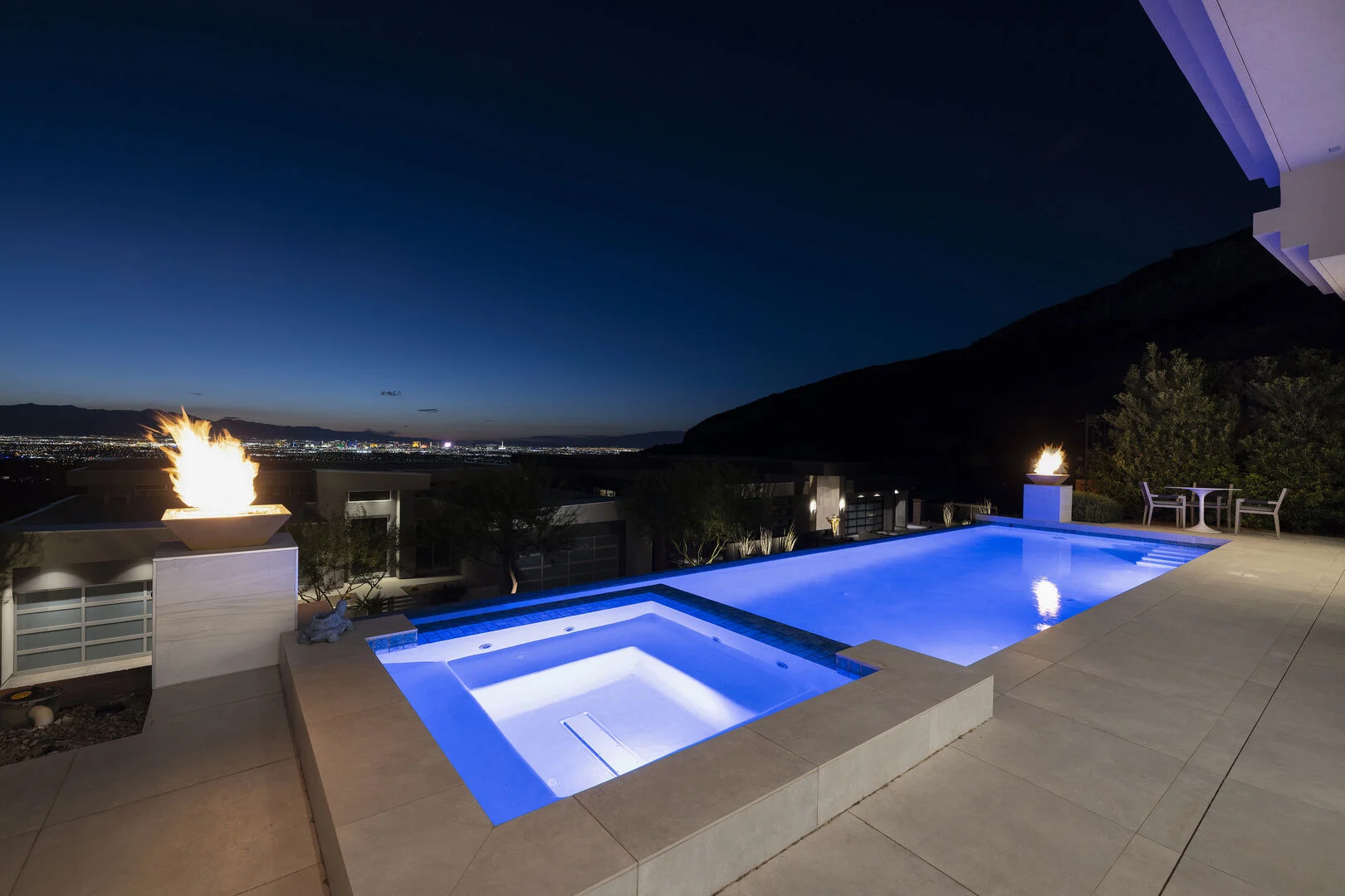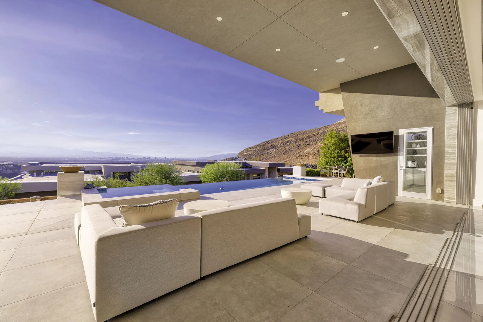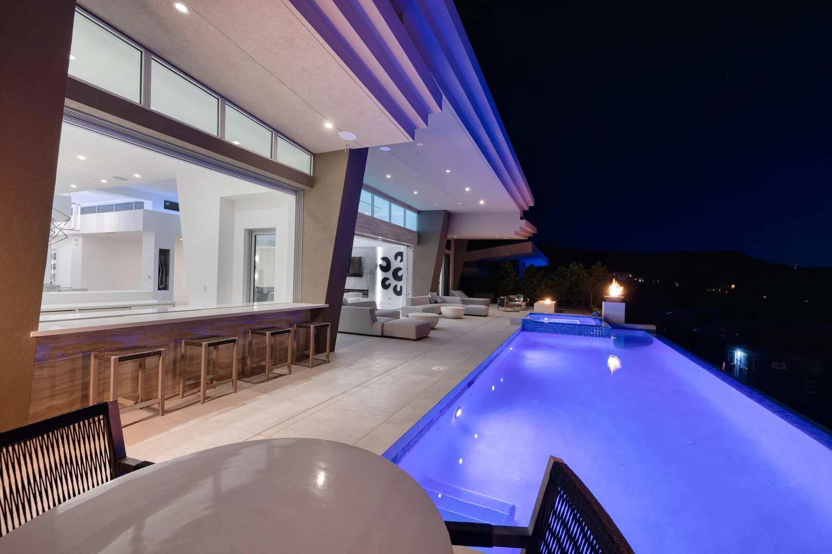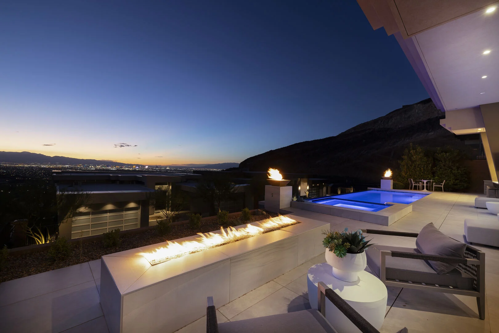 The perfect escape from the bustling Strip, this private luxury villa captures panoramic city and mountain views from its exclusive position in the MacDonald Highland Hills, 20 minutes from Las Vegas. Inside and out, this modern villa was made to entertain. Spend your stay lounging by the pool, grilling on the patio, or sipping wine in the hot tub. When ready, Vegas awaits.