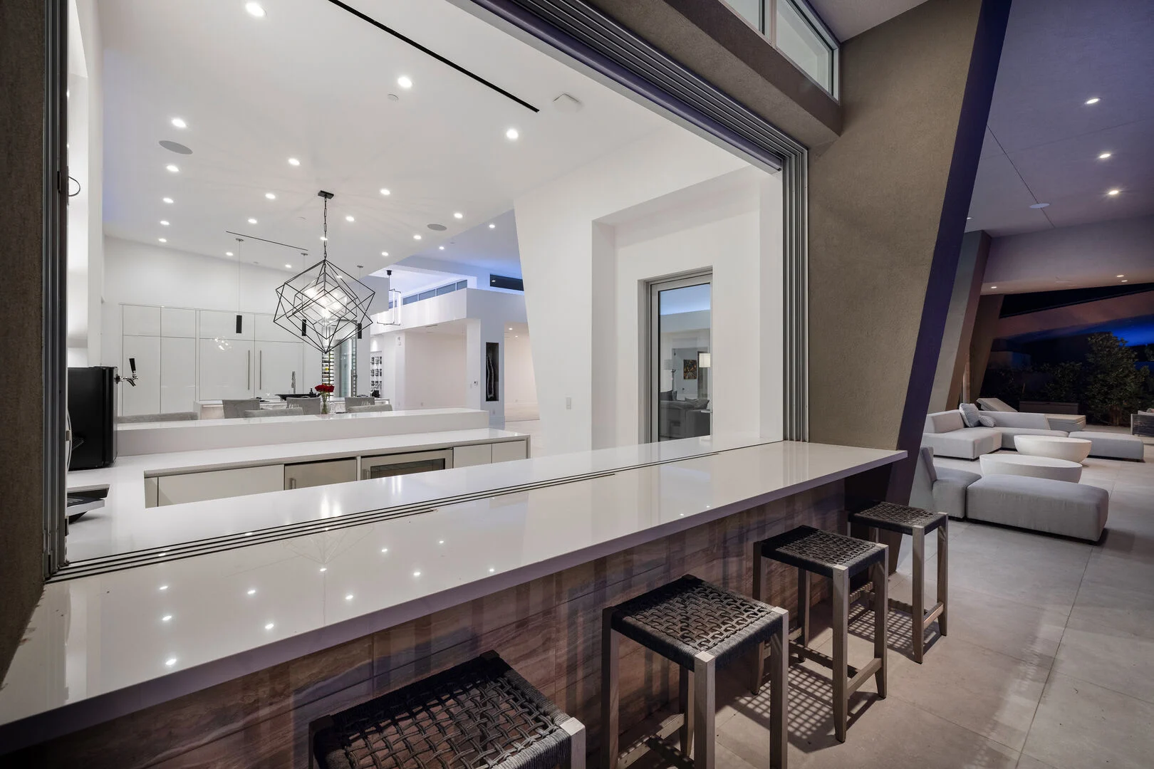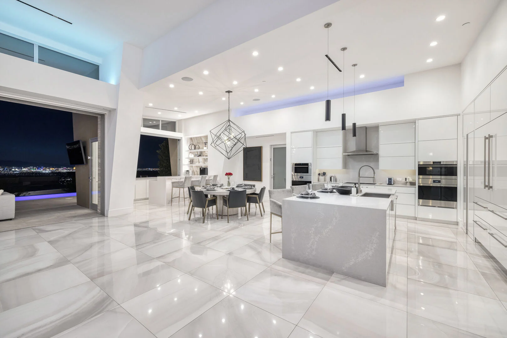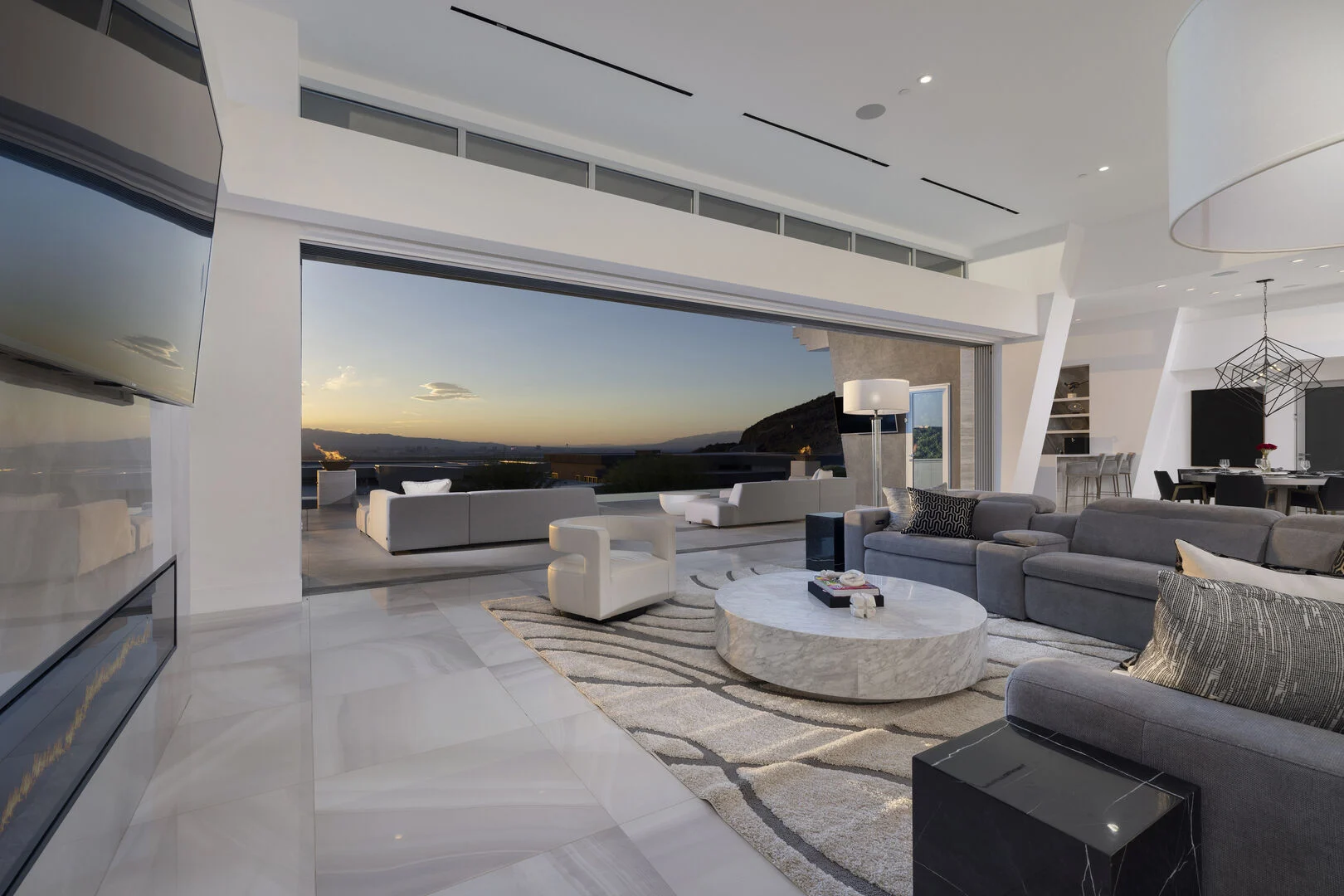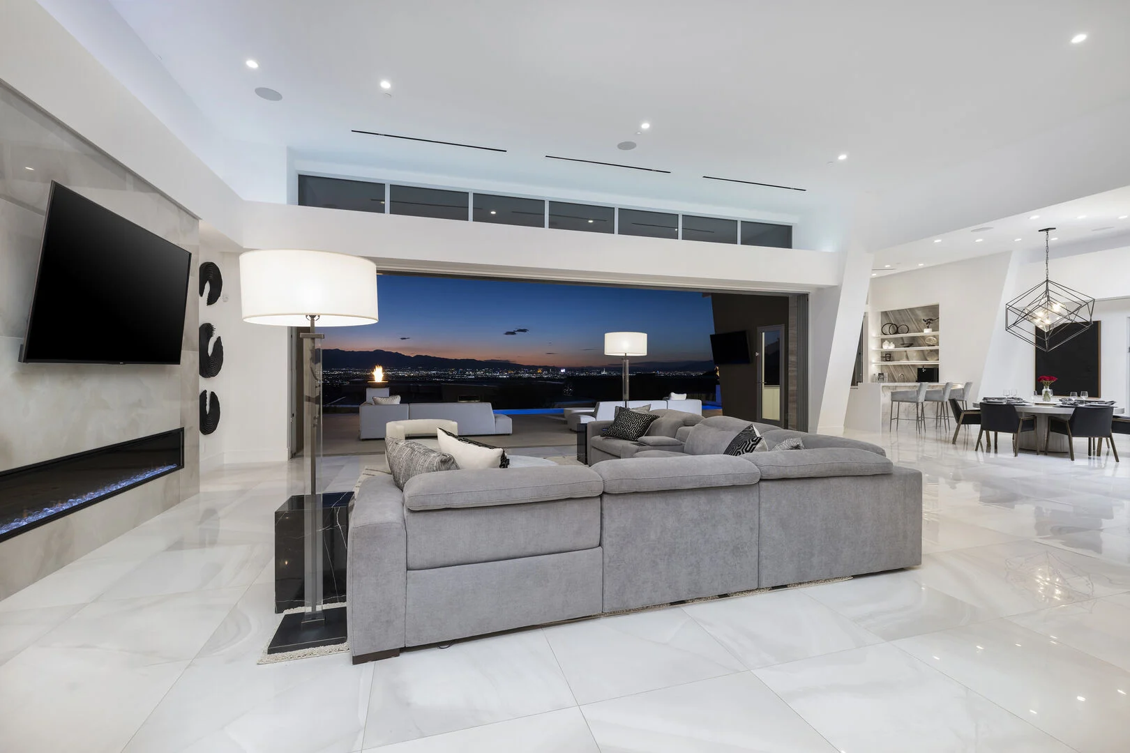 The perfect escape from the bustling Strip, this private luxury villa captures panoramic city and mountain views from its exclusive position in the MacDonald Highland Hills, 20 minutes from Las Vegas. Inside and out, this modern villa was made to entertain. Spend your stay lounging by the pool, grilling on the patio, or sipping wine in the hot tub. When ready, Vegas awaits.