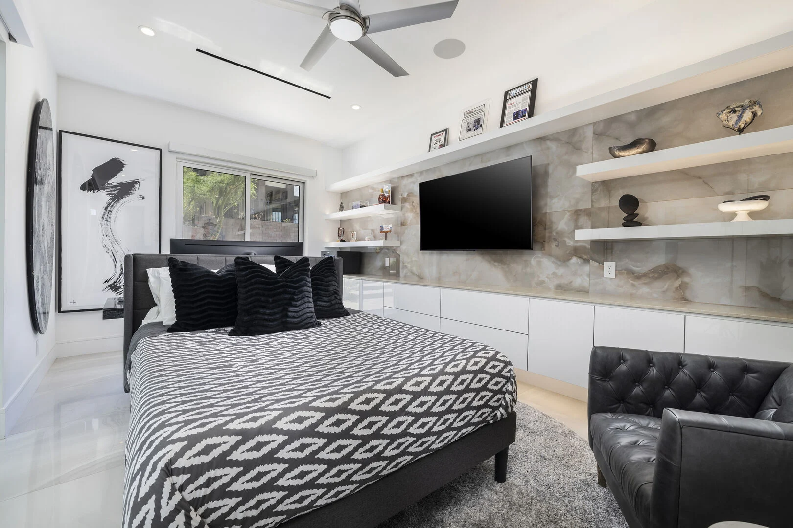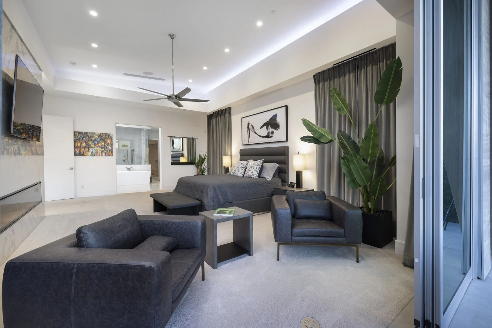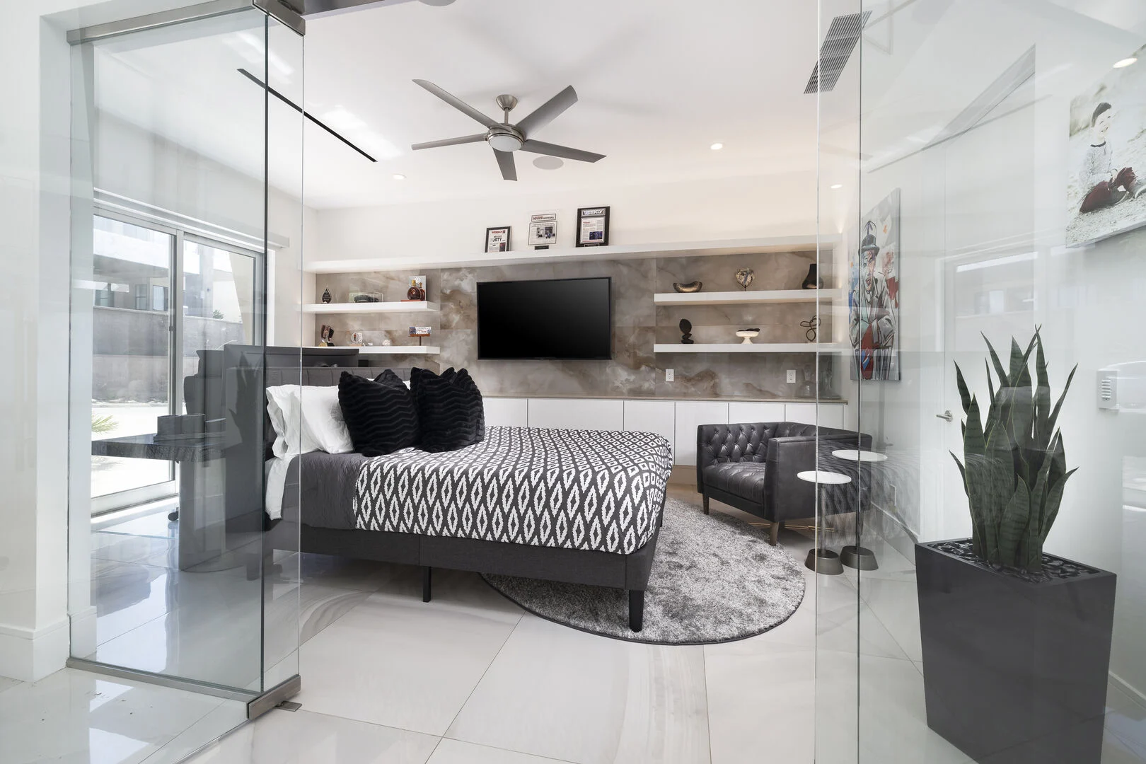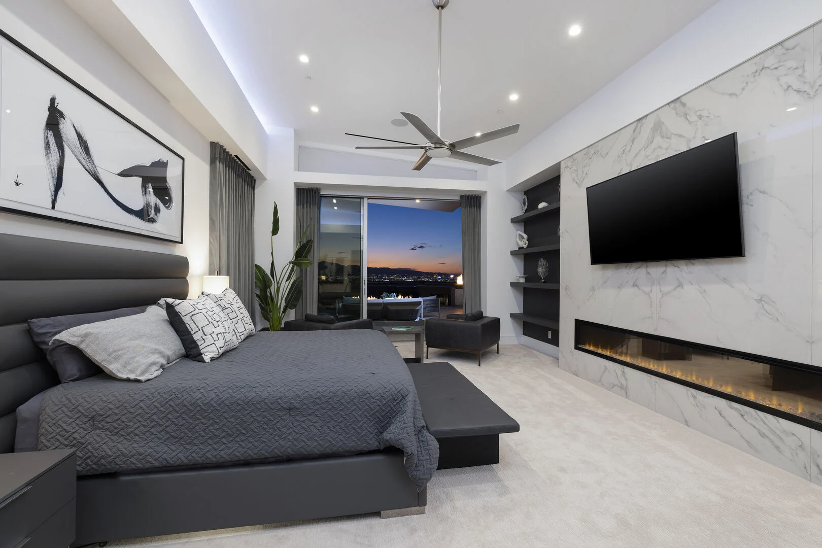 The perfect escape from the bustling Strip, this private luxury villa captures panoramic city and mountain views from its exclusive position in the MacDonald Highland Hills, 20 minutes from Las Vegas. Inside and out, this modern villa was made to entertain. Spend your stay lounging by the pool, grilling on the patio, or sipping wine in the hot tub. When ready, Vegas awaits.