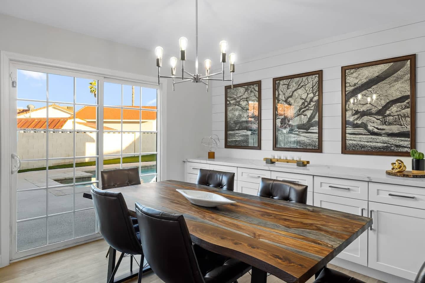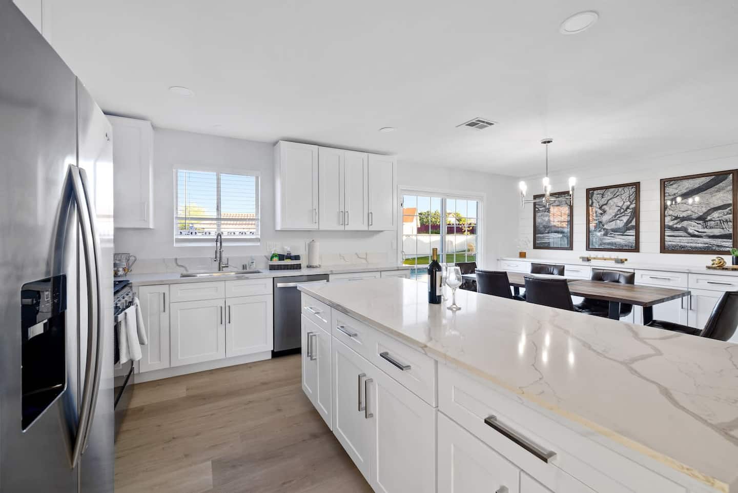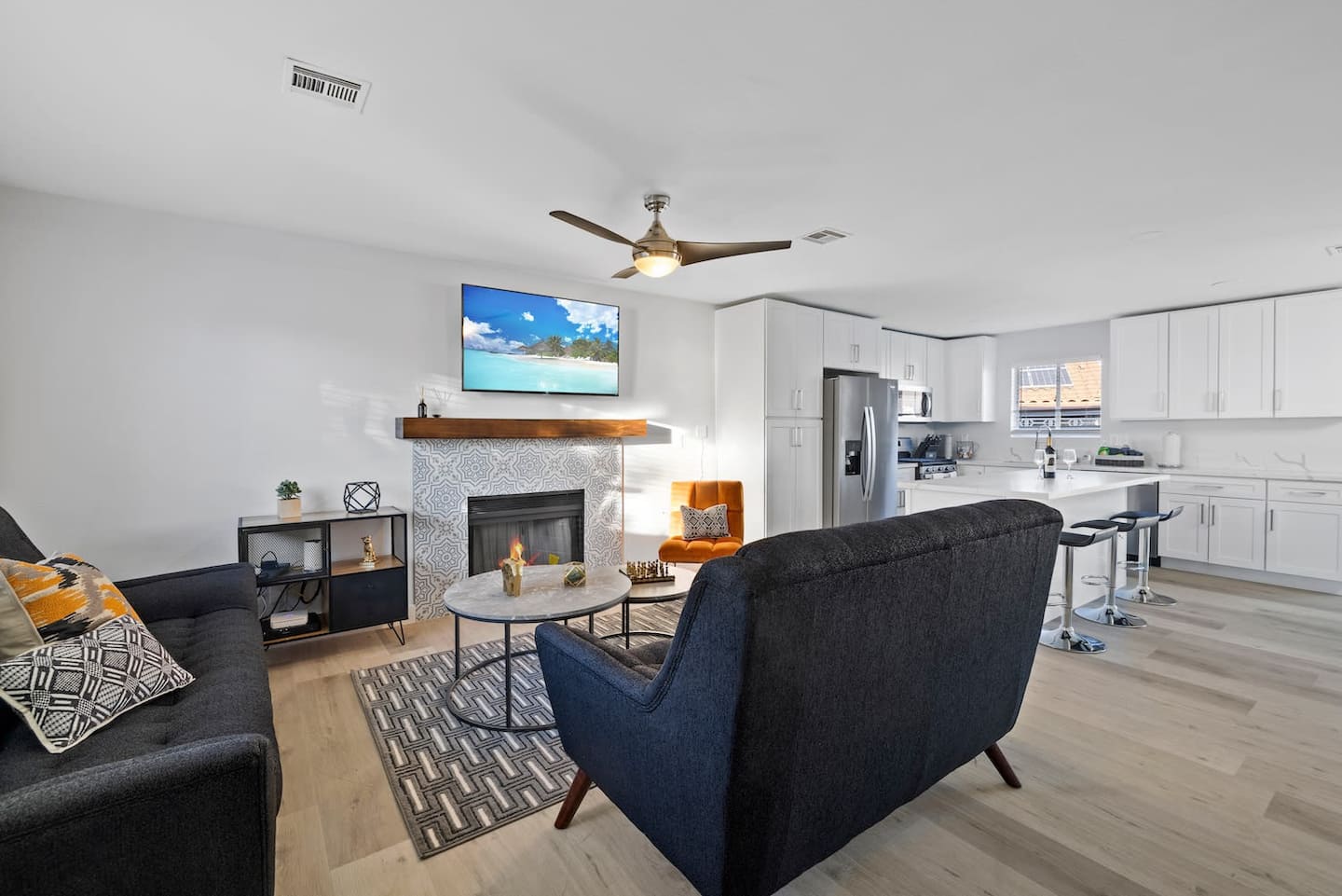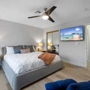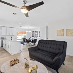 Bright and modern pool property in Henderson with jacuzzi. The large swimming pool and BBQ are ready for you to unwind after a day of fun in Vegas or in the boundless outdoors amenities in Henderson. Enjoy your own cozy space with 3 bedrooms, a modern kitchen to prepare meals in, and a relaxing living room with a fireplace. The home is equipped with smart televisions to stream all your favorite channels from home. Meticulously designed and prepared for you – be among the first to enjoy this home and all its brand new furniture and decor.
